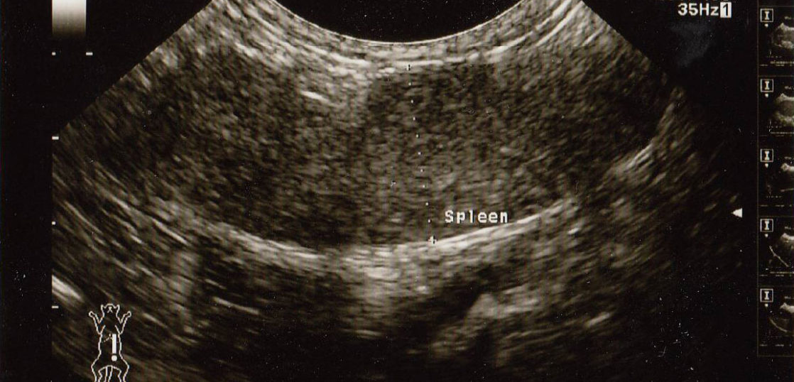 コルディの服用とオゾン療法を行い3週間後には触診で確認できなくなりエコー検査も行わずに経過を観てきましたが、その後も良好な体調が続いていましたので、悪性リンパ腫の治療を開始して3ヶ月後に腹部エコー検査を行いました。